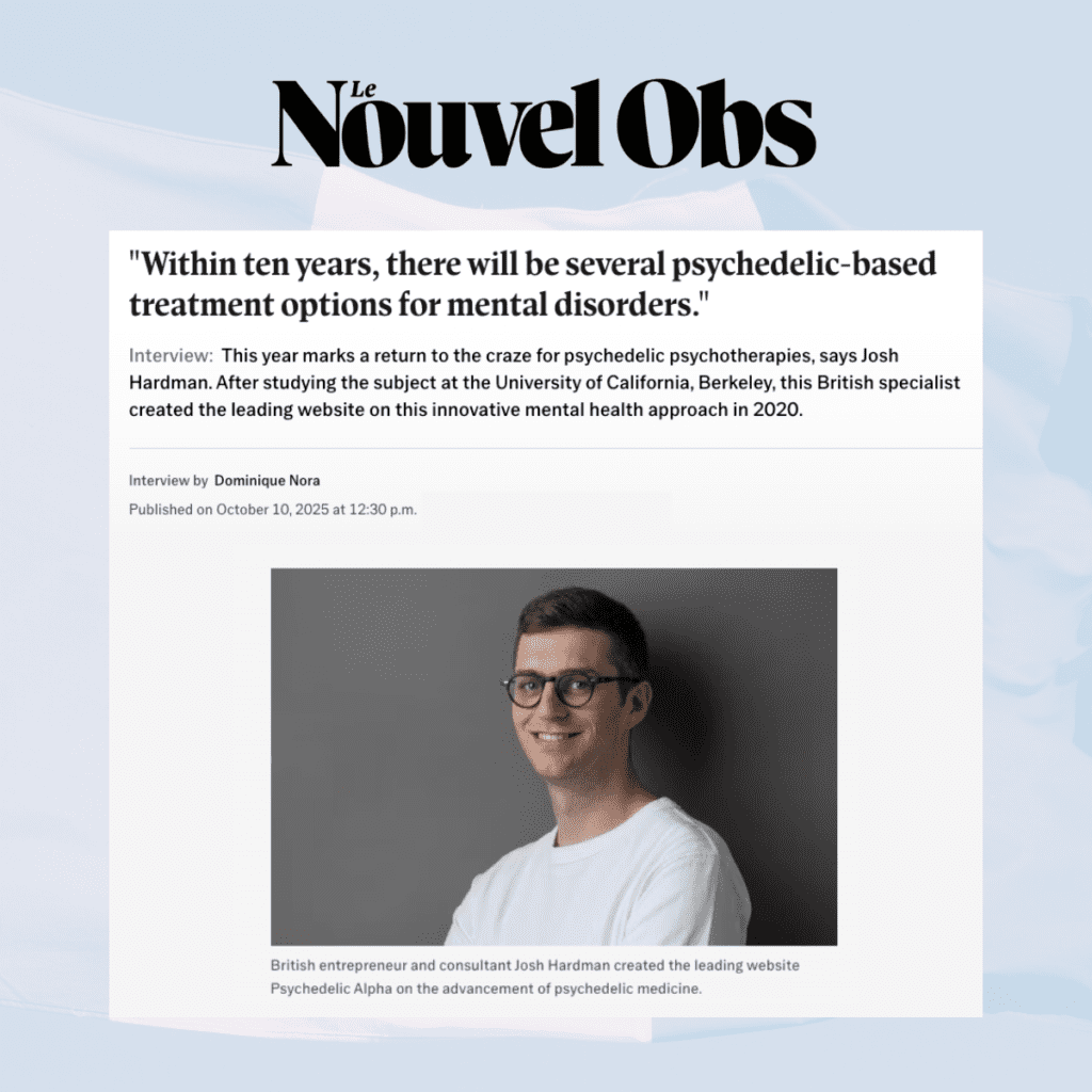 Friday was World Mental Health Day, which saw media outlets across the world spotlighting psychedelics’ potential in this realm. I was very pleased that my interview with journalist Dominique Nora was featured in French magazine Le Nouvel Obs’ Friday special. There, I discussed how the psychedelics field has changed in the past half-decade, what the pipeline looks like today, the challenges that psychedelic studies and rollout are facing, or might face, and a brief outlook on the future of the field.