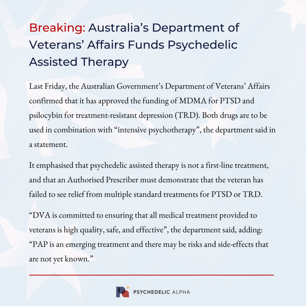 On Friday, the Australian Government’s Department of Veterans’ Affairs announced that it has decided to fund psychedelic assisted therapy for veterans who meet certain criteria. It’s the latest in a string of psychedelics-related headlines from down under, which we will be covering in more detail very soon.