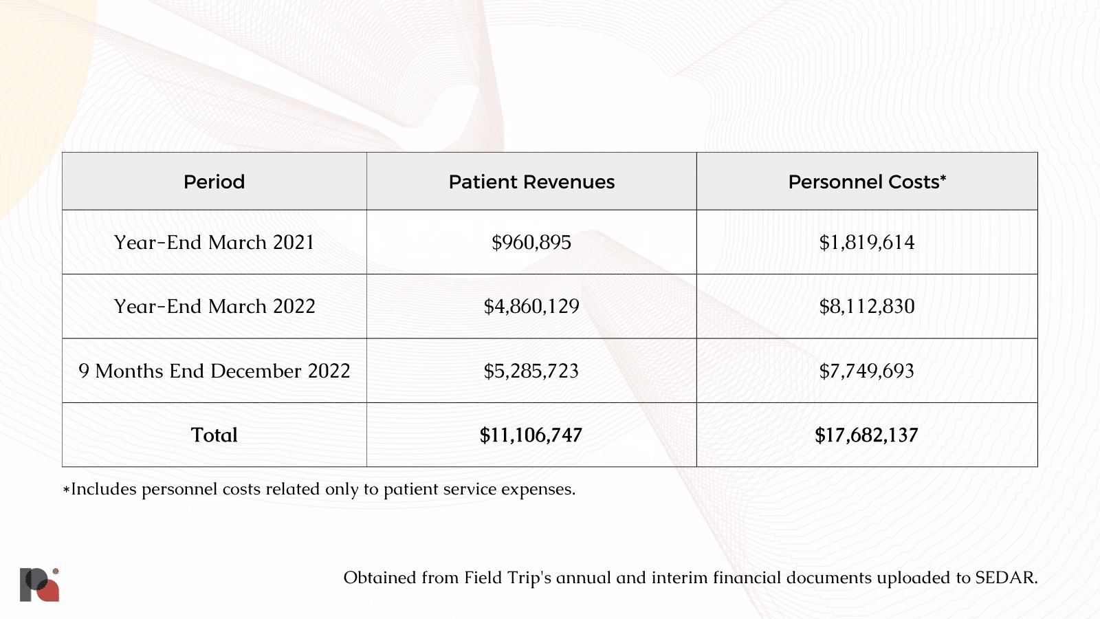 Despite making later strides towards narrowing this disparity, personnel costs consistently exceeded what Field Trip was able to earn in patient revenues. Additionally, over the course of its second fiscal year, Field Trip’s exchange listing costs alone (over $6m) surpassed its revenue, calling into question the prudence of its highly-touted NASDAQ listing.