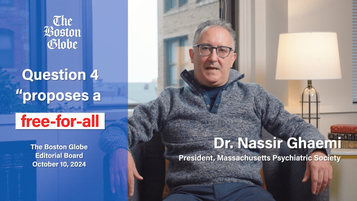No on 4 coalition members Dr. Nassir Ghaemi of Tufts University and Coalition for Safe Communities Chairperson Dr. Anahita Dua of Mass General Hospital (MGH) were both quoted.