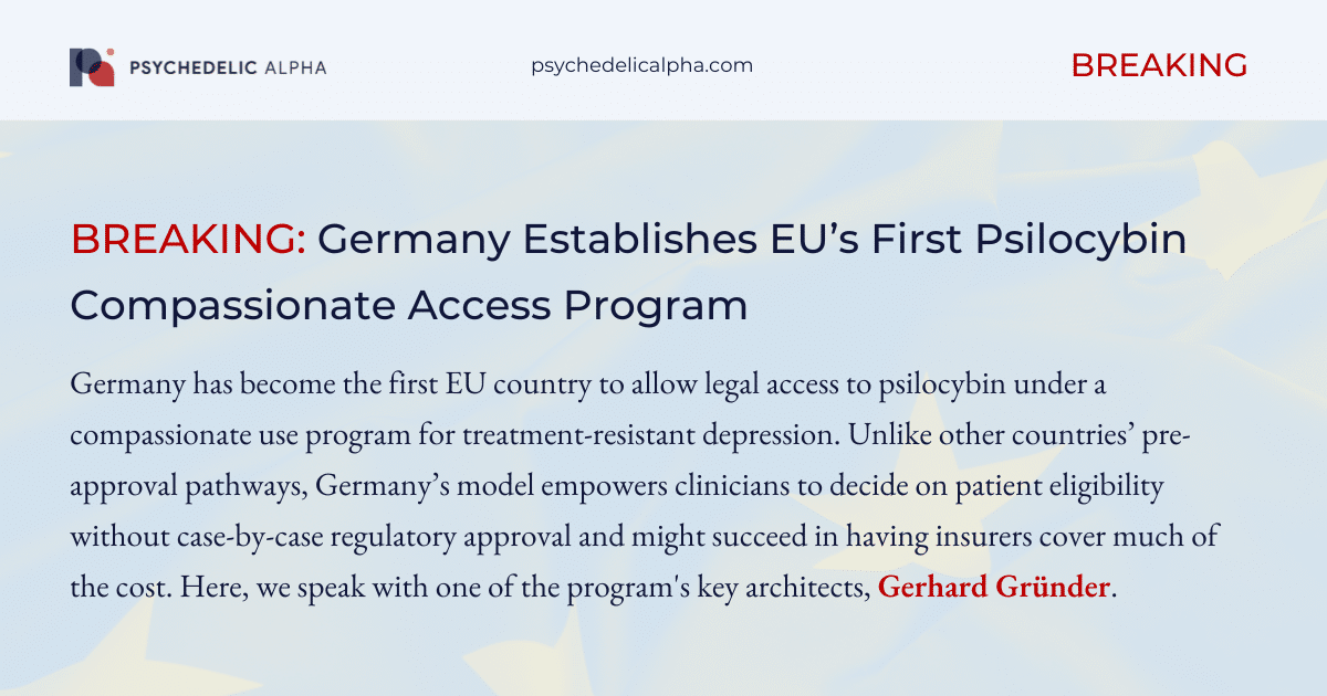 Psychedelic Alpha spoke with Gerhard Gründer, who submitted the successful application and will lead the roll-out of the compassionate use program, to learn more about this development.