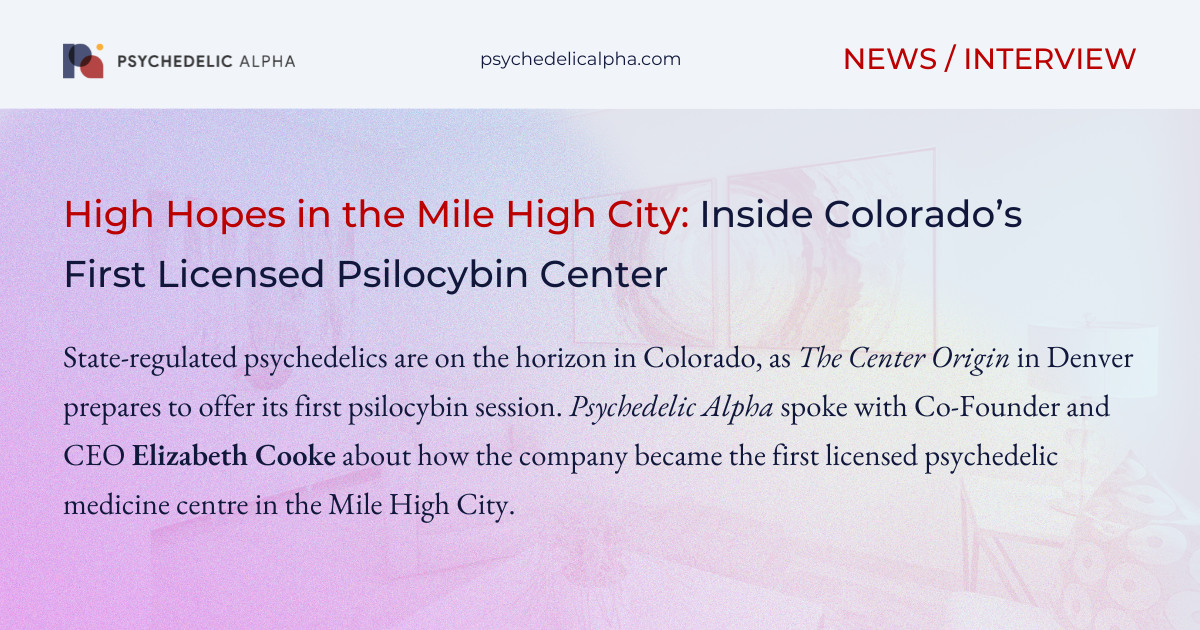 State-regulated psychedelics are on the horizon in Colorado, as The Center Origin in Denver prepares to offer its first psilocybin session. Psychedelic Alpha spoke with Co-Founder and CEO Elizabeth Cooke about how the company became the first licensed psychedelic medicine centre in the Mile High City.