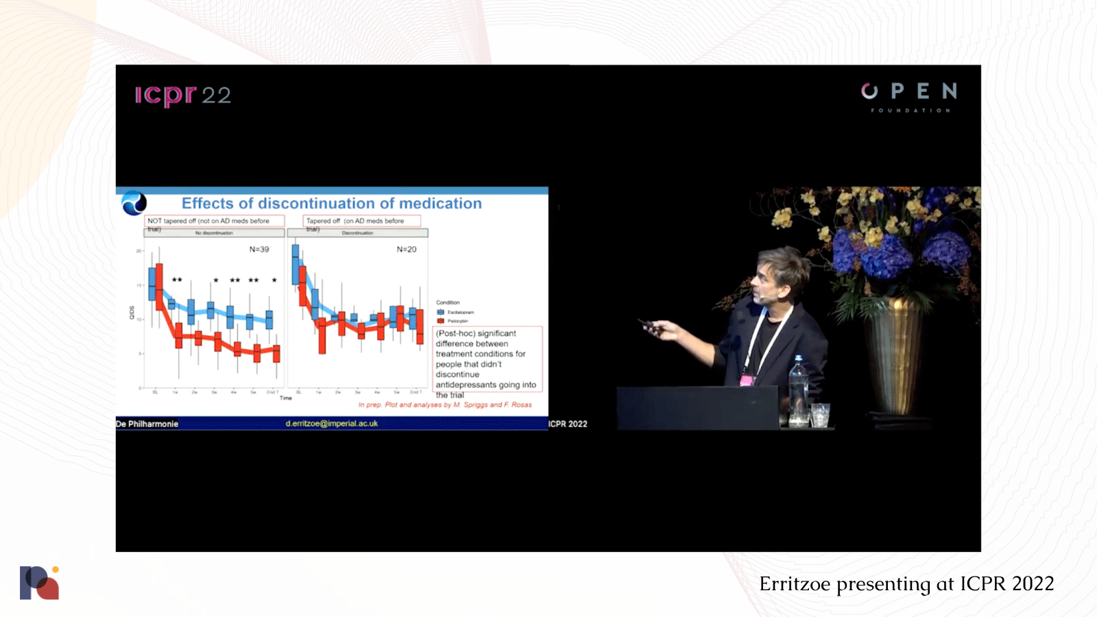 âThe Erritzoe ICPR post-hoc analysis figure very clearly illustrated that participants who had recently discontinued their current antidepressant medication for enrollment in their trial had a less robust psilocybin antidepressant effect, which was equivalent to escitalopramâs antidepressant response.â