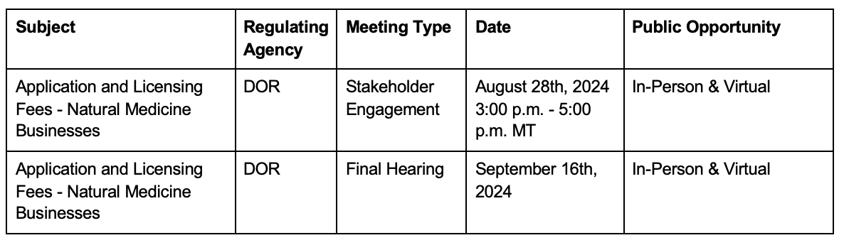 License fees for Natural Medicine Businesses will be established during a second round of rulemaking, anticipated in late summer 2024.