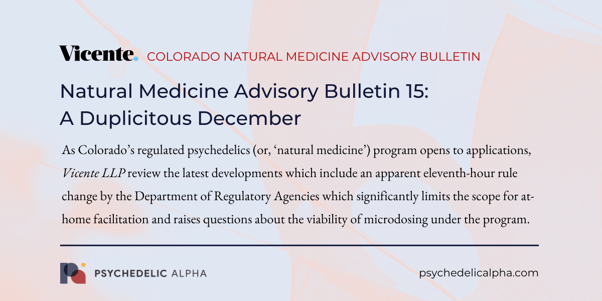 Note: This Natural Medicine Advisory Bulletin is written by Vicente LLP, and does not necessarily reflect the views of Psychedelic Alpha.