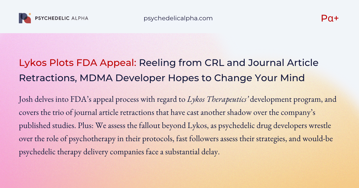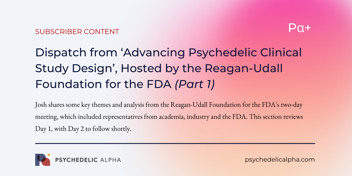 For the next two weeks, Psychedelic Alpha is on the road. I will be speaking at the 6th Annual Psychedelic Therapeutics & Drug Development Conference in New Orleans on Thursday, as well as at an event at the New Orleans BioInnovation Center. I then head to New York and Washington, D.C. If you would like to connect, please do get in touch.