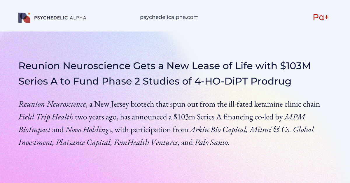Also on the psychedelic drug development front, Reunion Neuroscience shared that FDA has granted its lead candidate, RE104 (4-HO-DiPT), breakthrough therapy designation for postpartum depression.