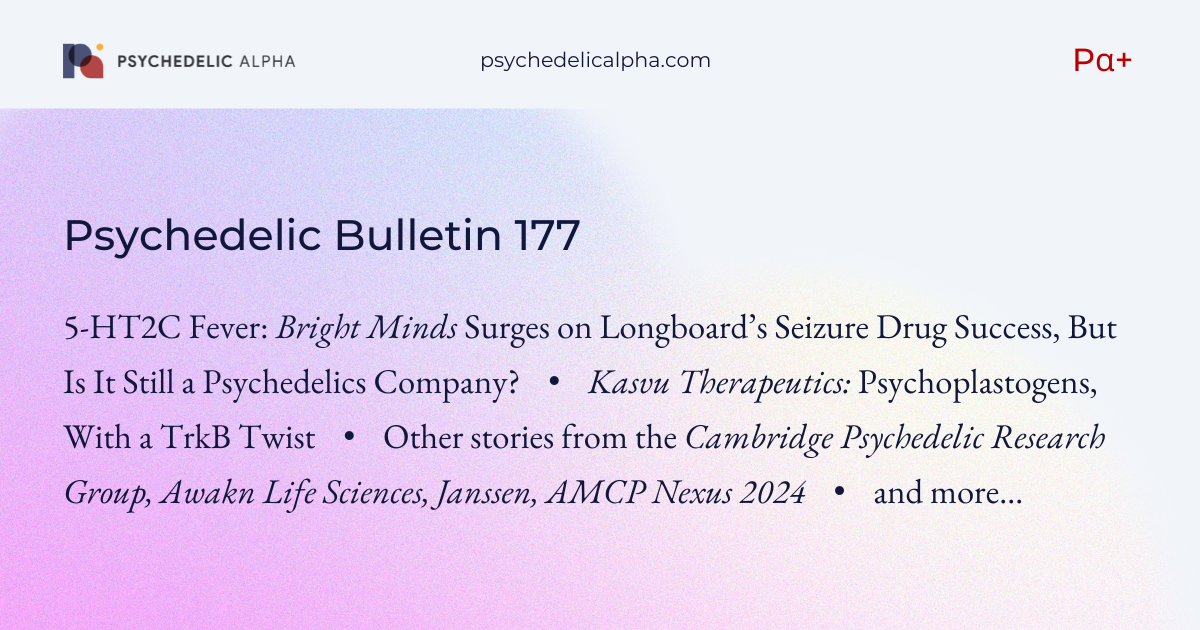 Pα+ Psychedelic Bulletin #177: Bright Minds Surges on Longboard’s Seizure Drug Success; Kasvu Therapeutics Is Developing Psychoplastogens With a TrkB Twist