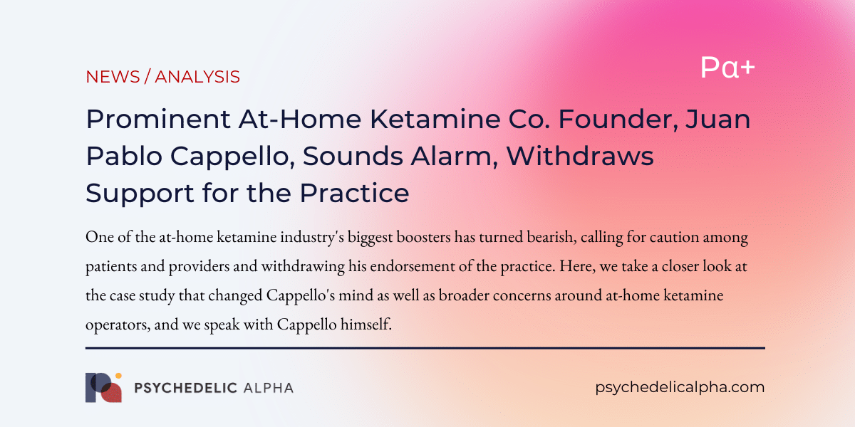 Prominent At-Home Ketamine Co. Founder, Juan Pablo Cappello, Sounds Alarm, Withdraws Support for the Practice