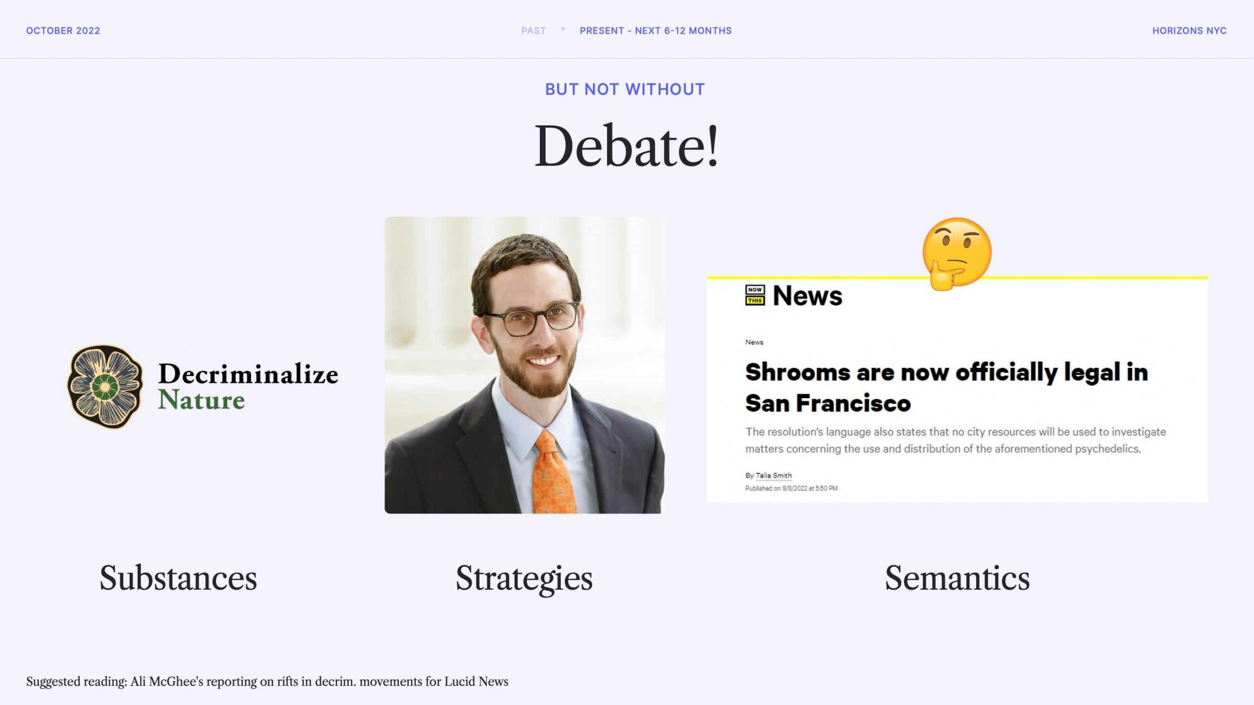 But, this policy reform wonât be without debate! And, not just from psychedelic sceptics: thereâs division within the psychedelic drug policy reform movement, too. Just look at the debate around Coloradoâs Proposition 122.