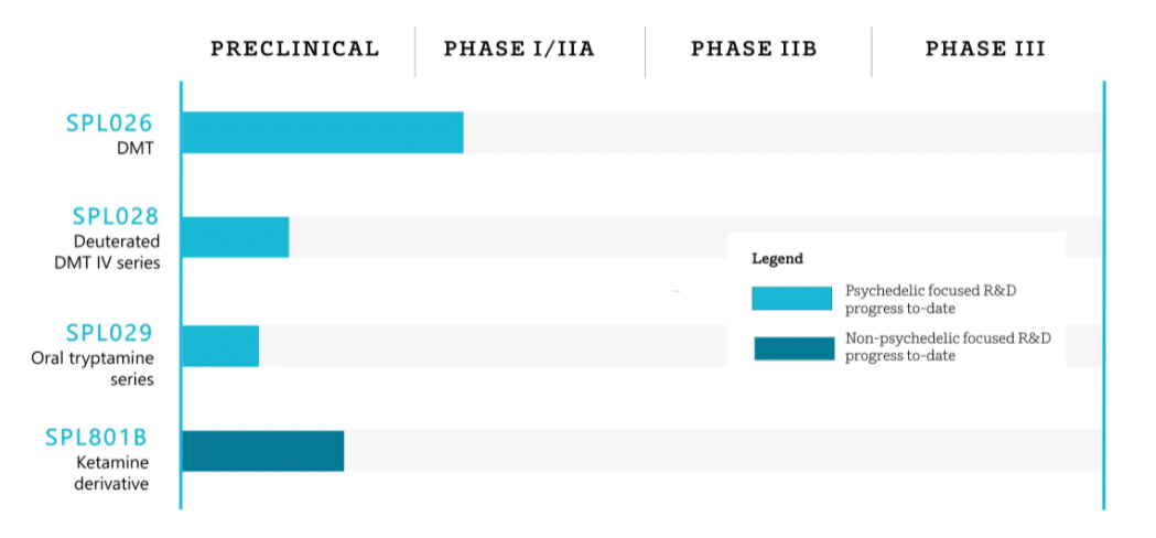 In another similarity to MindMed’s study, Small Pharma’s lead candidate (SPL026) is delivered via intravenous injection. The company also has an extended duration IV in its pipeline (SPL028), along with other candidates.