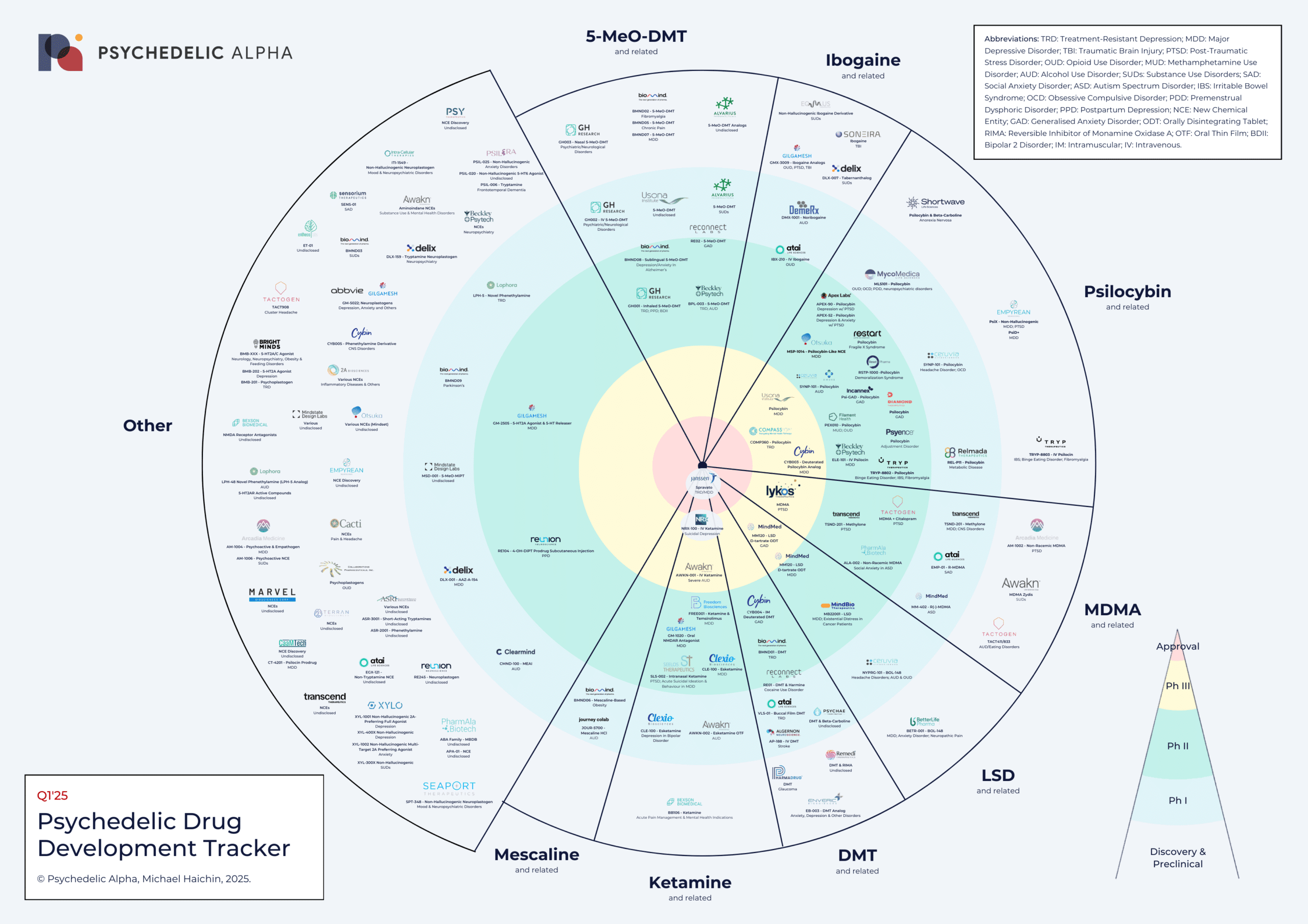 Q1’25 Psychedelic Drug Development Pipeline: Bullseye Chart