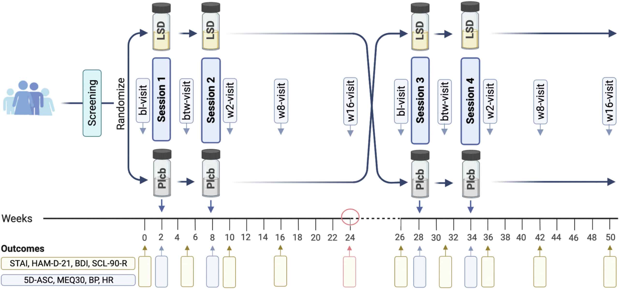 - Meaning all participants received two doses of both LSD and placebo in a random order, divided by a âwashoutâ period of 2 weeks.
